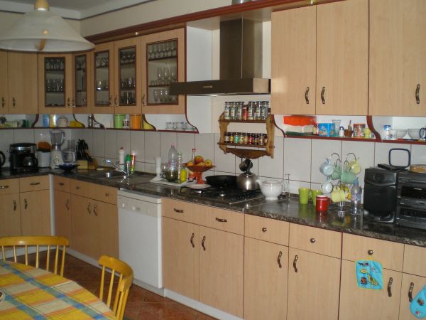 A tágas konyha és étkező minden igényt kielégítően felszerelt, gépesített (hűtő- és fagyasztószekrény, gáztűzhely, villanysütő, mikro, szendvicssütő, kávéfőző, mosogatógép).